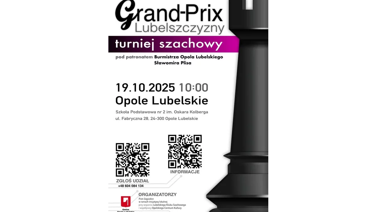 Turniej rozpocznie się 19 października o godzinie 10 w Szkole Podstawowej nr 2 im. Oskara Kolberga przy ul. Fabrycznej 28 w Opolu Lubelskim. Organizatorzy zapowiadają emocjonujące pojedynki, sportową atmosferę oraz możliwość podziwiania najlepszych szachistów z całego województwa.