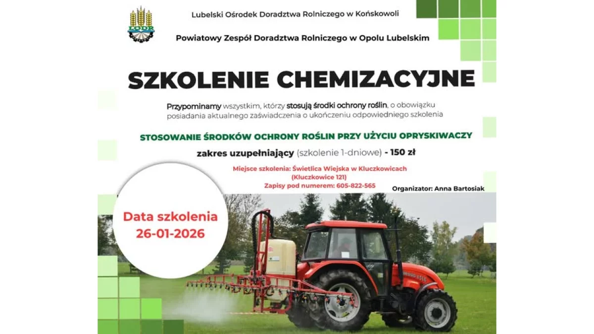 Liczba miejsc jest ograniczona, dlatego organizatorzy zachęcają do wcześniejszego zgłaszania udziału. To dobra okazja, aby uzupełnić wymagane uprawnienia, zadbać o bezpieczeństwo pracy oraz stosować środki ochrony roślin zgodnie z obowiązującymi przepisami.