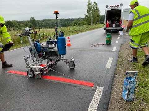 W piątek na drodze powiatowej od strony Kazimierza i Zaborza pojawiły się linie akustyczne w kolorze czerwonym. Ich wykonanie kosztowało ponad dwa tys. zł.