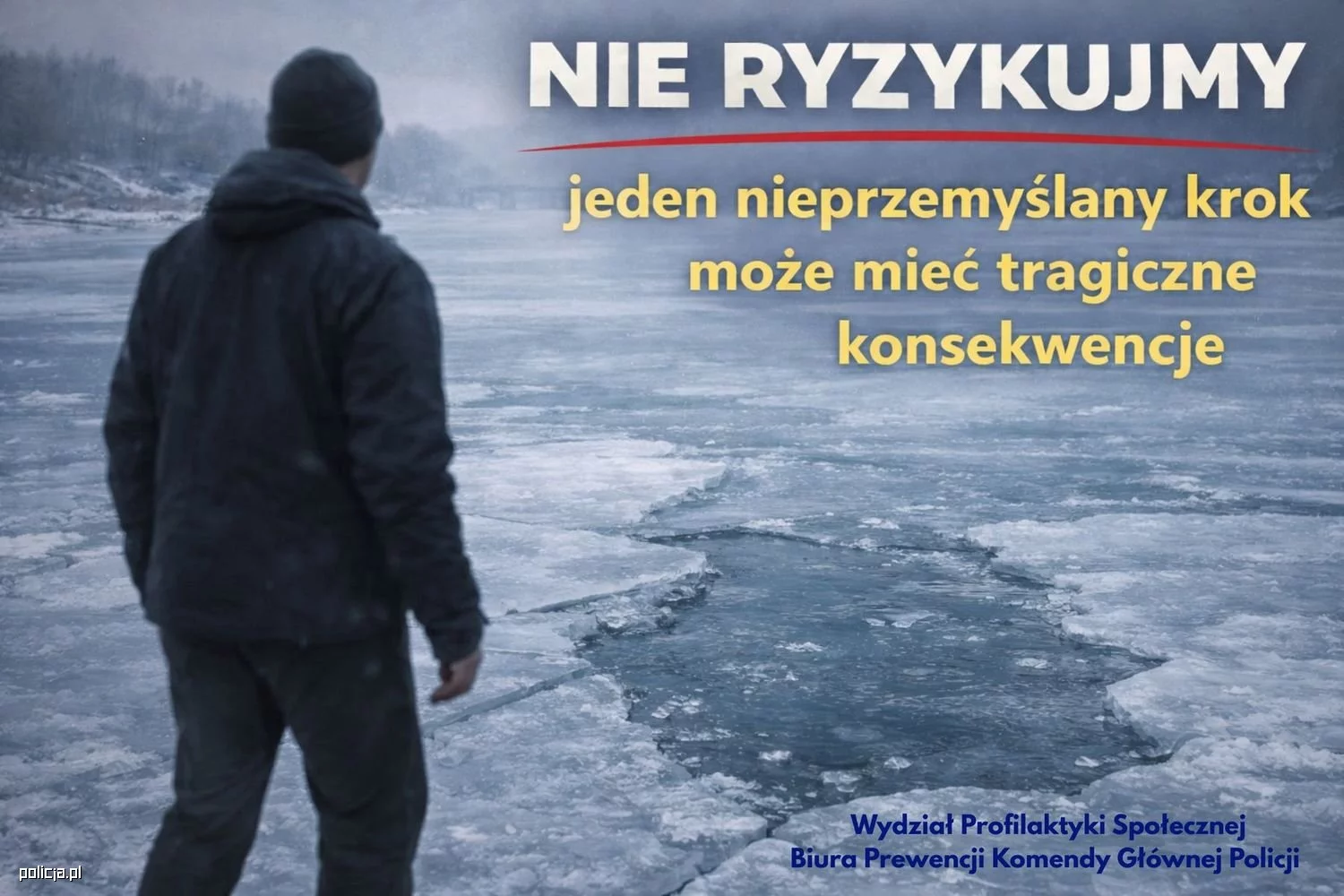 Policja przypomina: zamarznięte rzeki i zbiorniki wodne nie są miejscem do spacerów ani zabawy. Każdy krok na lodzie może skończyć się tragedią. Najbezpieczniej spędzać czas zimą w miejscach do tego przygotowanych, np. na sztucznych lodowiskach.