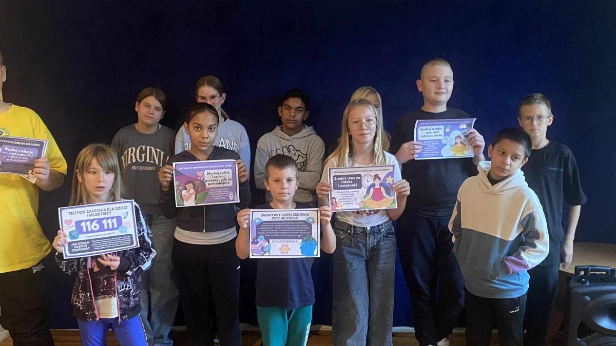 Podczas spotkania omówiono także, jak ważne jest reagowanie, gdy zauważymy, że ktoś z naszego otoczenia funkcjonuje inaczej niż zwykle. Na zakończenie zajęć dzieci i młodzież przygotowały plakaty zachęcające do dbania o swoje zdrowie psychiczne i szukania wsparcia, gdy pojawiają się trudności.