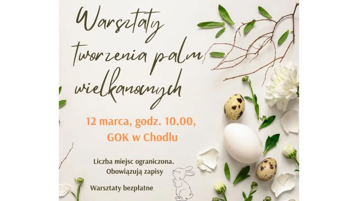 Podczas warsztatów uczestnicy będą mogli własnoręcznie przygotować tradycyjne palmy wielkanocne oraz poznać techniki ich wykonywania. To dobra okazja, aby kultywować wielkanocne tradycje i spędzić czas w twórczej atmosferze.