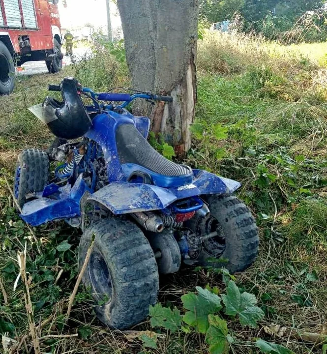 12-latek, kierując quadem, który na dodatek nie był dopuszczony do ruchu, wjechał w drzewo. Do zdarzenia doszło, gdy nastolatek jechał drogą powiatową z Wronowa w kierunku Poniatowej.