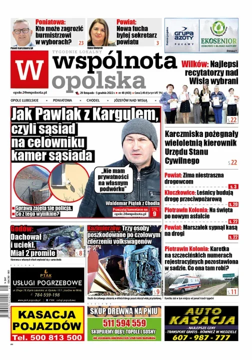 Mężczyzna od kilku miesięcy bezskutecznie walczy o ich usunięcie albo umieszczenie w innym miejscu. O jego walce o odzyskanie prywatności przeczytasz w najnowszym numerze Wspólnoty Opolskiej.