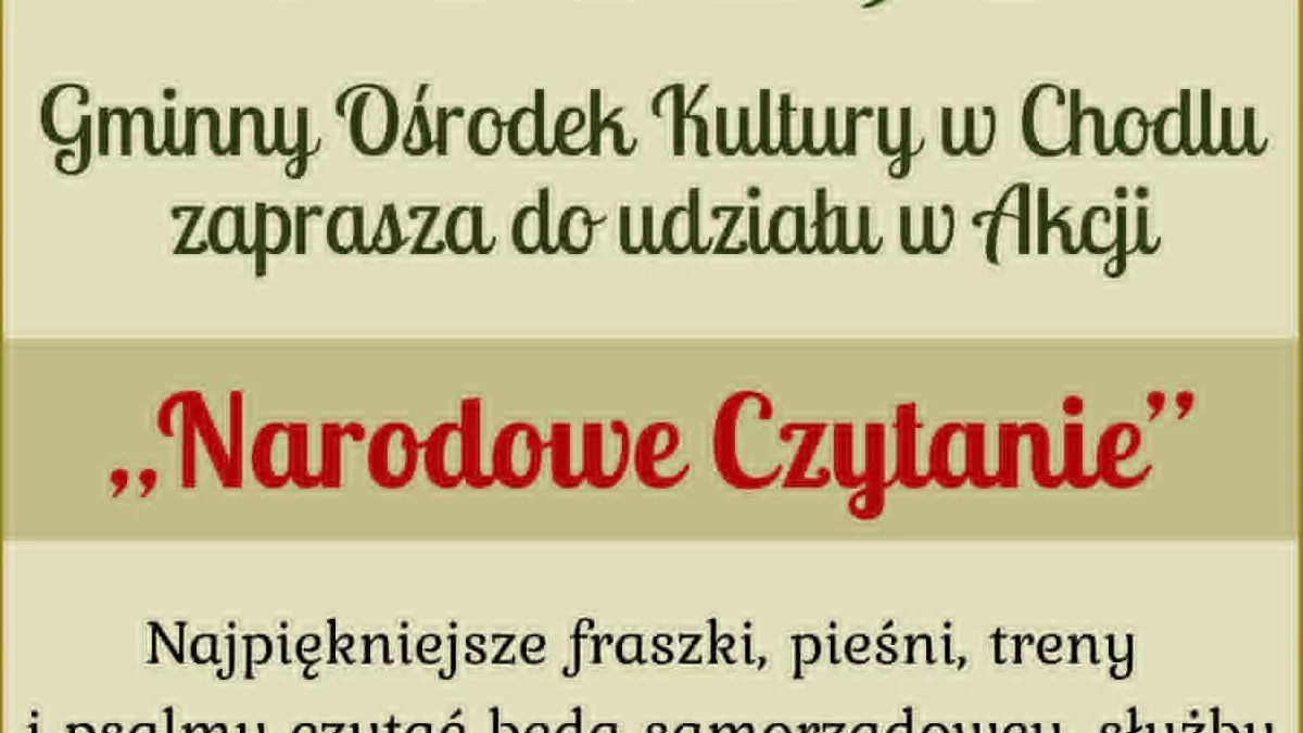 Organizatorzy zapraszają do aktywnego udziału wszystkich chętnych – osoby, które chciałyby włączyć się w głośne czytanie, mogą zgłaszać się do Gminnego Ośrodka Kultury w Chodlu (tel. 81 829 10 91).
