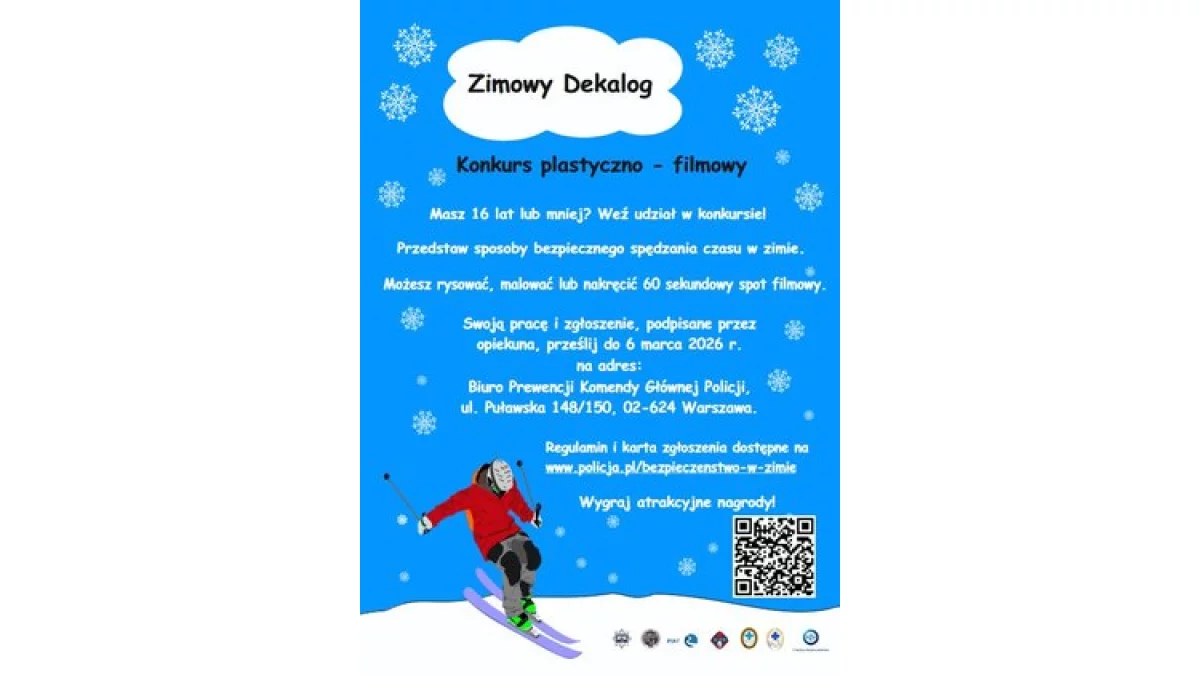 Celem konkursu jest promowanie bezpiecznych zachowań podczas zimowych aktywności – zarówno rekreacyjnych, jak i sportowych. Uczestnicy mają za zadanie w kreatywny sposób zilustrować zasady bezpieczeństwa obowiązujące przez cały sezon zimowy, przygotowując rysunek, plakat lub krótki spot filmowy.