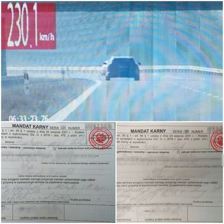 W środę jechał z prędkością aż 230 km/h/. Dodatkowo popełnił wykroczenie polegające na wyprzedzaniu innego pojazdu z niewłaściwej strony. Za to też dostał mandat karny - w wyskości 1000 złotych.