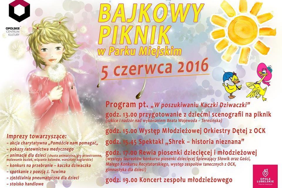 "Bajkowy piknik" z okazji Dnia Dziecka pod hasłem "W poszukiwaniu Kaczki Dziwaczki" odbędzie się w niedzielę, 5 czerwca 2016 r. w Parku Miejskim.