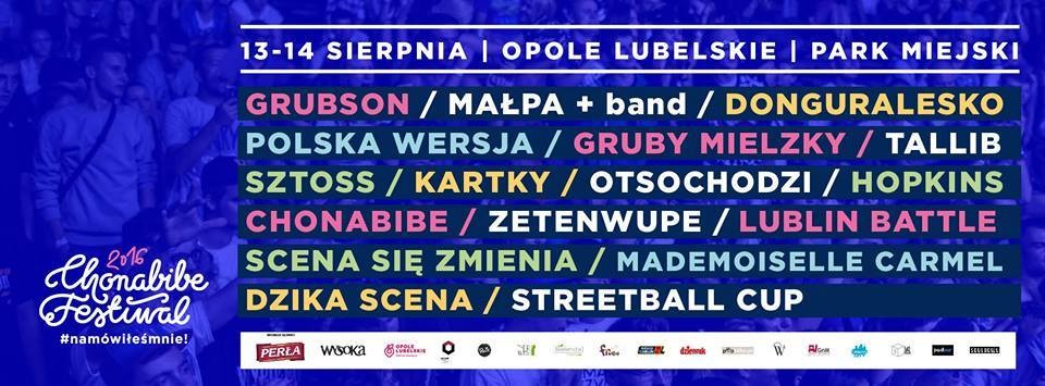 - czytamy na stronie facebookowej Chonabibe Festiwal 2016