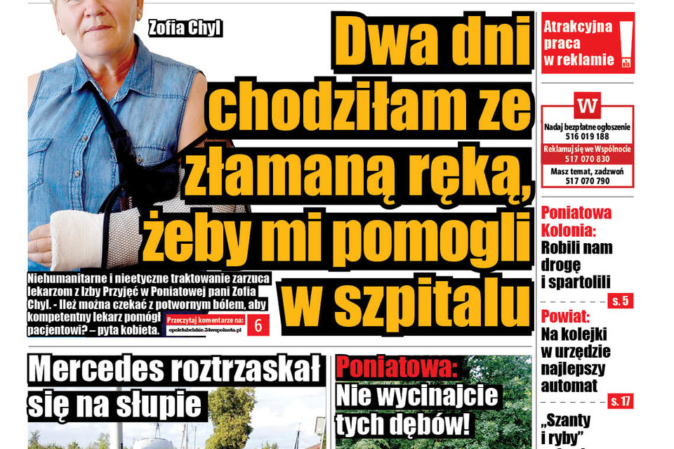 – opowiada Zofia Chyl, która tym, co przeżyła przez dwa dni w szpitalu w Poniatowej była tak zbulwersowana, że postanowiła opowiedzieć całą historię nam, licząc, że skłoni ona władze spółki do przyjrzenia się temu, co dzieje się na Izbie Przyjęć i jak tam są traktowani pacjenci.