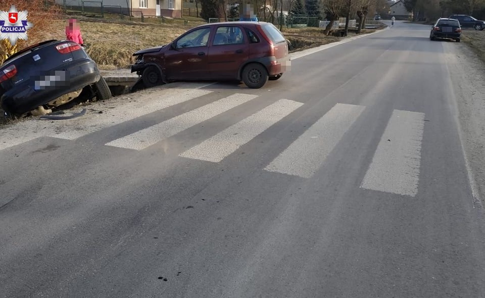 Do zdarzenia doszło dzisiaj w godzinach rannych w m-ści Kowala Druga, gm. Poniatowa. Z ustaleń policjantów wynika, iż 46-letnia mieszkanka gm. Poniatowa kierując pojazdem m-ki Seat Alhambra usiłowała włączyć się do ruchu z drogi podporządkowanej. Podczas wykonywania tego manewru wjechała częściowo na drogę z pierwszeństwem przejazdu ocierając się o jadący prawidłowo pojazd m-ki Seta Leon, kierowany przez 34-letnią mieszkankę Poniatowej. Po uderzeniu straciła panowanie nad swoim autem zjechała na przeciwny pas jezdni uderzając w stojący pojazd m-ki Opel, kierowany przez 47-letnią mieszkankę Poniatowej. Po zderzeniu kierująca seatem zjechała do przydrożnego rowu. Na szczęście nikt z uczestników nie odniósł obrażeń.