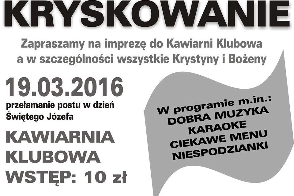 Sobota, 19 marca 2016 r. w Kawiarni Klubowa. Wstęp: 10 zł