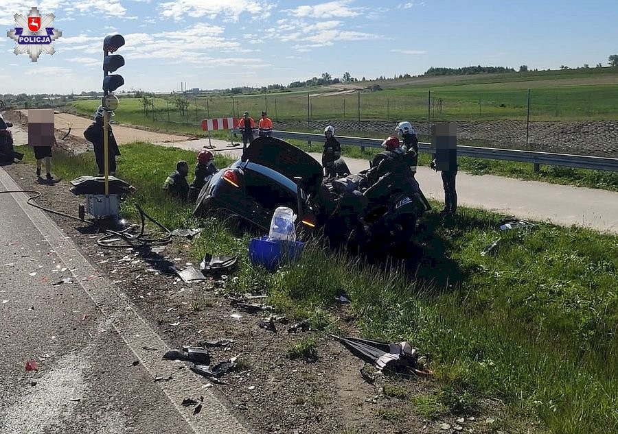 Wskutek zdarzenia trzy osoby zostały przewiezione do szpitala. Wśród nich jest ciężarna pasażerka nissana. Na miejscu pracują policjanci, którzy ustalają okoliczności tego groźnego zdarzenia.