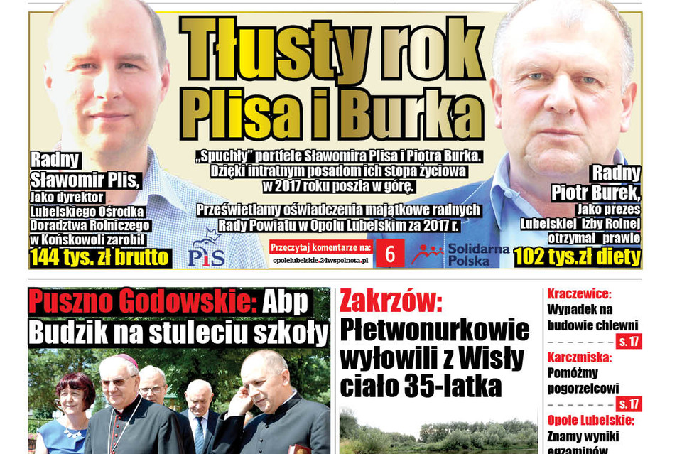 Uwagę zwraca kilka oświadczeń. W 2017 r. poprawiła się dola radnych opozycyjnych. Sławomira Plisa i Pawła Karczmarczyka z PiS oraz Piotra Burka z Klubu Porozumienie Powiatowe. Do kieszeni radnego Burka wpadło o ponad 4 tys.zł więcej. Chodzi o dietę, jaką pobiera pełniąc funkcję prezesa Lubelskiej Izby Rolniczej. W 2017 r. Burek zarobił w LIR prawie 102 tys.zł.