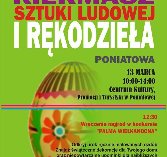Kiermasz Wielkanocny Sztuki Ludowej i Rękodzieła odbędzie się w niedzielę, 13 marca 2016 r. w godz. 10:00-14:00 w Centrum Kultury, Promocji i Turystyki w Poniatowej.