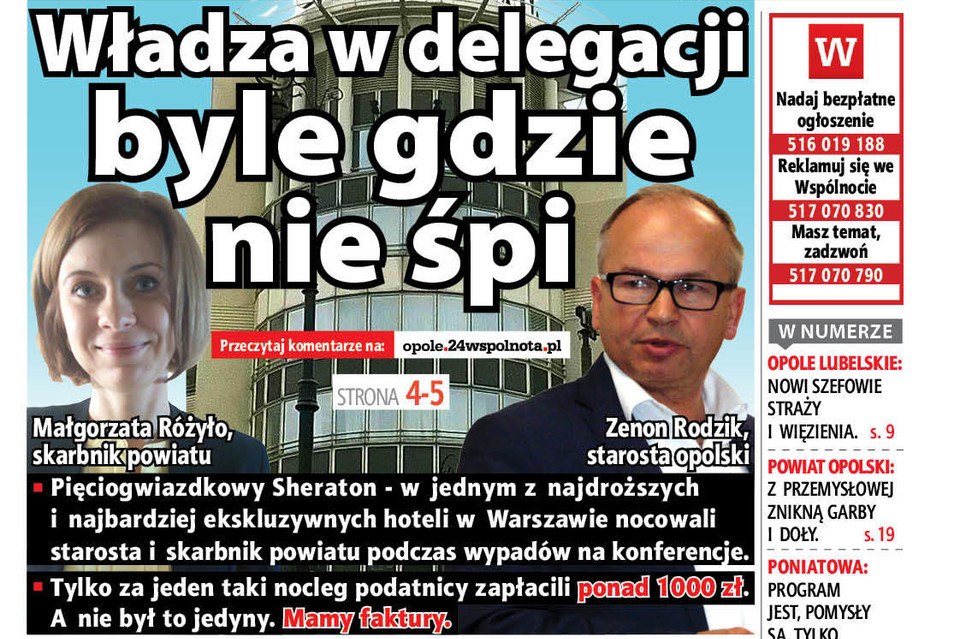 Ale żeby wyrwać te dane ze Starostwa Powiatowego w Opolu Lubelskim, trzeba było zjeść beczkę soli. Starosta początkowo nie chciał nam podać, dokąd służbowo jeździł i po co. Gdy pojawiły się podejrzenia, że ma coś do ukrycia, głosy krytyki ze strony opozycji i sprawa oparła się o Samorządowe Kolegium Odwoławcze, w końcu się ugiął.