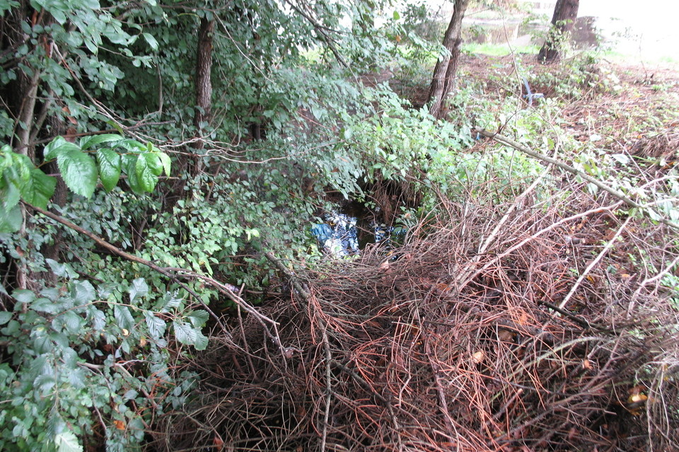 Jak twierdzi, do tego rowu melioracyjnego trafiły m.in. gałęzie drzew wycinanych podczas remontu wiaduktu kolejki wąskotorowej.