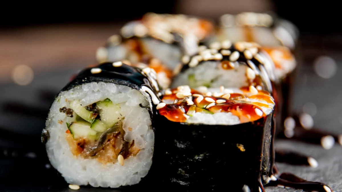 - California Roll: Rolki z awokado, surimi i ogórkiem, obtoczone w sezamie. Klasyka wśród sushi.